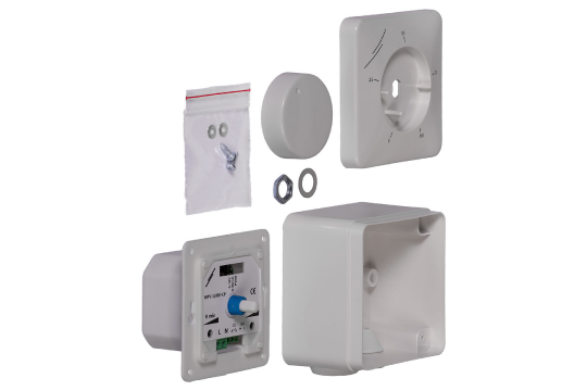 continuously variable fan operation, 0-100% presettable, On/Off via room thermostat, surface-mounted protection class IP 54, flush-mounted protection class IP 44, 230 V, AC, 0-100%, Surface-mounted, Protection class IP 54, Colour similar to RAL 9010 pure white, made of plastic, Type 30510