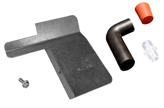 Accessory set for cooling with condensate for condensate drainage along a natural gradient, consisting of a valve condensate tray, plugs, drain elbow and double nipple with 16 mm hose connection, right, supplied separately