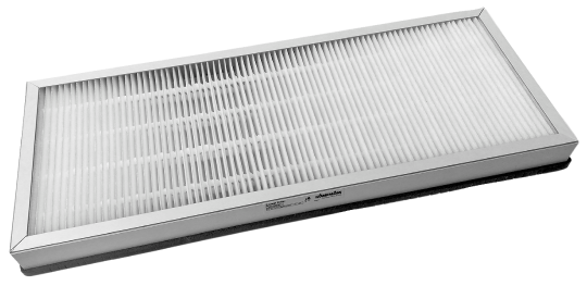 durable wall casing made of powder-coated galvanised sheet steel, the filter can be changed or inspected without disassembly of the casing, Vertically suspended, powder coated, Colour RAL 9016 traffic-white, pre-fitted housing