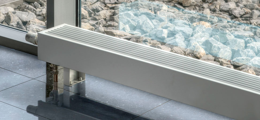 Apart from the standard RAL 9016 traffic white finish, the casing is also available in other colours on request. As a free-standing convector, the PowerKon + F is versatile to use.