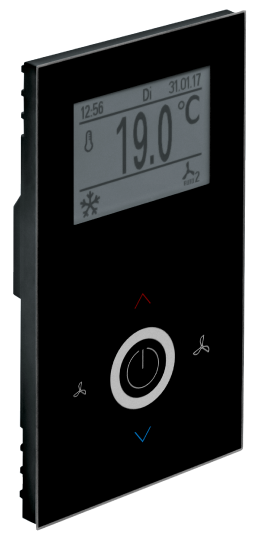 Heating/Cooling, 2- and 4-pipe, without Modbus, only with valves/valve kits Open/Closed, continuous fan control, with LCD operating menu and integrated timer program, 230 V, AC, Open/Closed, Surface-mounted, Protection class IP 30, Temperature setting range 0 - 50 °C, Colour similar to RAL 9004 signal black, Type 148942