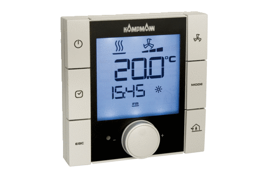 - KaControl control system for operation via a separate room control unit, external control via a 0-10 V signal or building automation systems, such as KNX, modbus, BACnet (additional plug-in card accessory required)