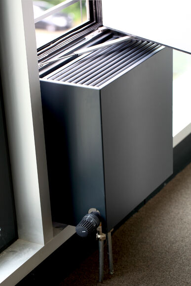 The matching powder-coated finish on the casings and attractive linear grilles blend harmoniously into the interior of the building.