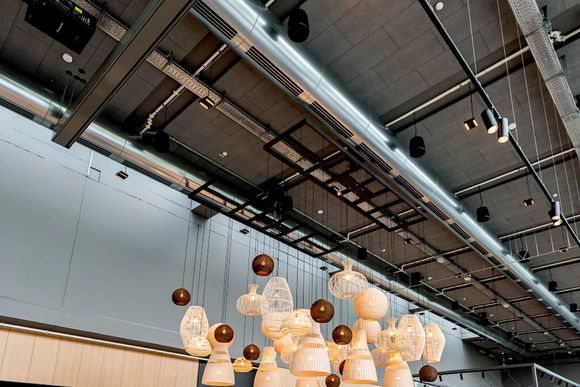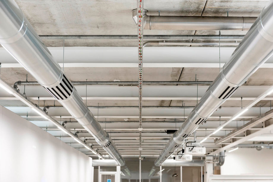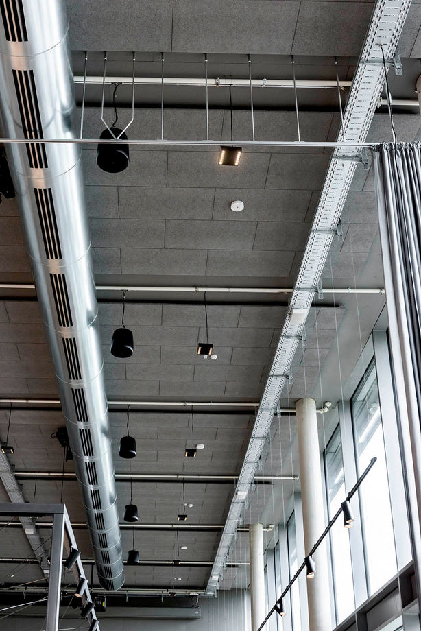 But there also needs to be a supply of fresh air to create a pleasant room climate. This is provided in Lichtenfels by Kampmann RRA tubular diffusers and WKD vortex chamber swirl outlets. While the minimalist yet sophisticated exterior of the RRA can also be used as an interior architectural feature in public areas, the integrated wide nozzle of the WKD is designed for high ceilings in halls.