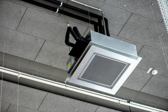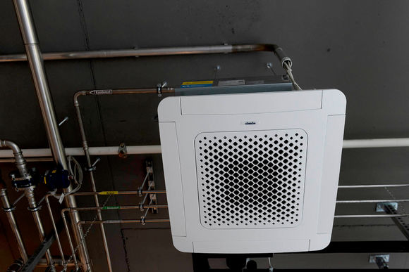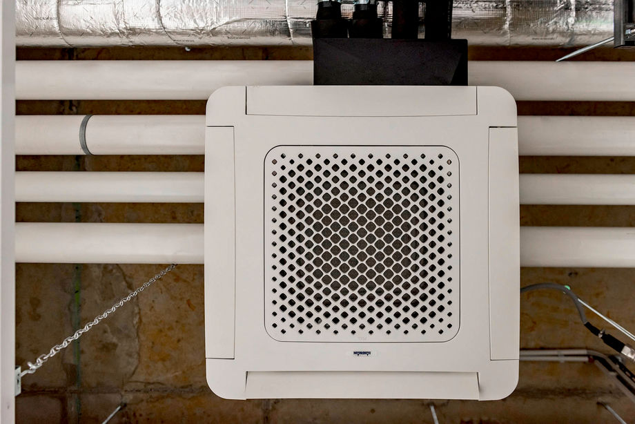 The KaCool D AF ceiling cassette fits into the standard dimensions of a ceiling grid. However, at Concept Laser in Lichtenfels, the units are not concealed within a suspended ceiling but are installed visibly under the ceiling. The side diffuser of the KaCool D AF uses the Coandă effect and ensures a comfortable supply of heated or cooled air.