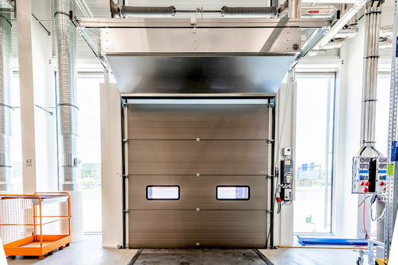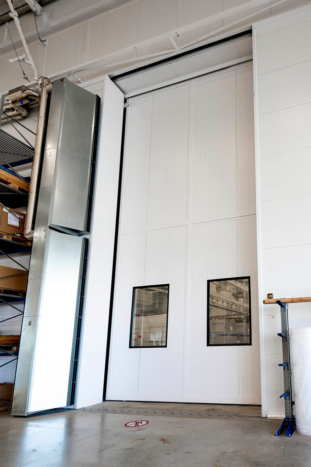 The doorways are screened by Kampmann door air curtains to prevent the ingress of cold air: thanks to its patented technology, the ProtecTor, which consists of an ambient air stream and a warm air stream, is both effective and economical. As standard, the door air curtains are installed horizontally above the doorway. However, Concept Laser also has the vertical version: two ProtecTor units mounted on top of each other at ultra-high doorways ensure that the comfortable climate stays inside.