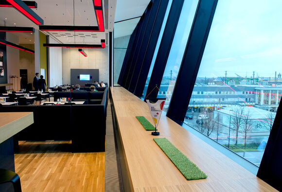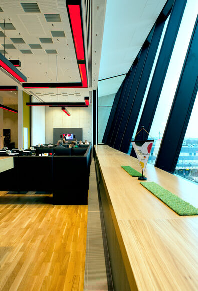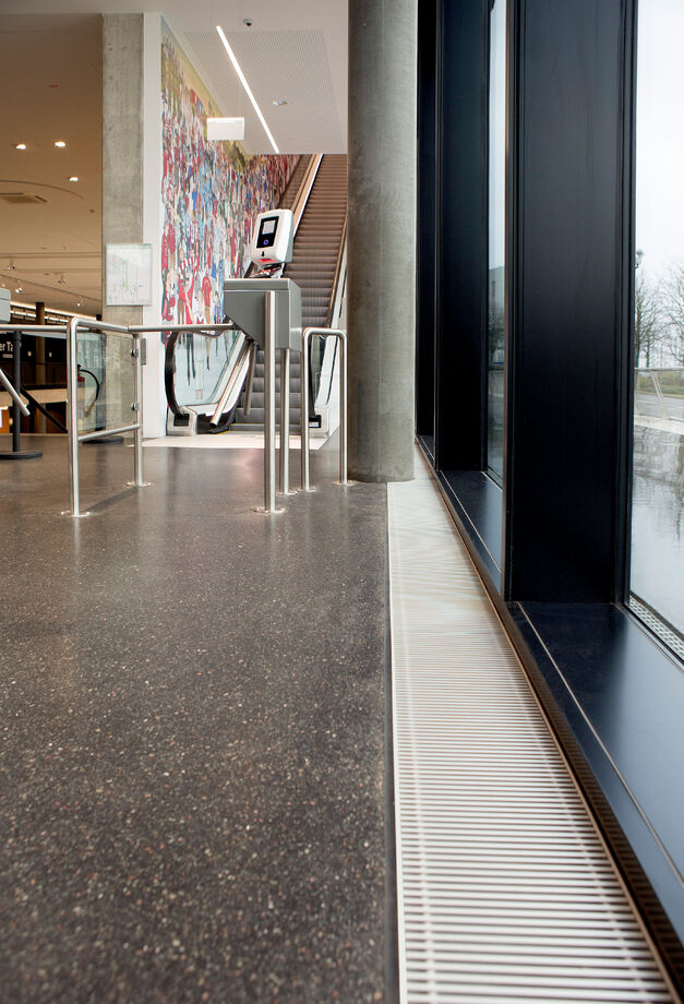 The site of the German Football Museum was determined in a multi-stage process – and a better site could not have been chosen. The museum is located in central Dortmund, a city with a major club and even greater footballing enthusiasm, which can be perfectly reached from all directions and is located directly opposite the main railways station. The museum was designed by architects HPP (Hentrich-Petschnigg & Partner), based in Düsseldorf. "An ecologically and economically sustainable and efficient construction" was crucial to the German Football Association. That is one reason why Kampmann trench heating is installed underneath the high glazed façades around the ground floor and café.