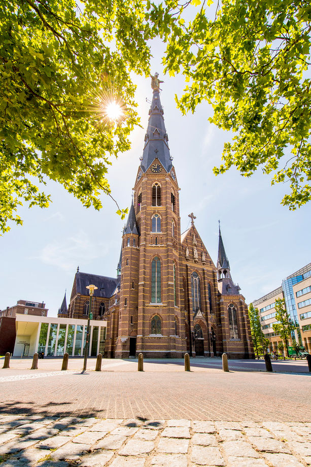 With outstretched arms, a human figure stands on the top of the Eindhoven church tower, like they are about to do a bungee jump. It is Jesus. Of course, this was not the impression intended by the builders of the Augustinian Church. At that time, the popular sport of bungee jumping was still in the distant future and the figure was supposed to symbolically bless the city, in the centre of which the high church tower is located. But today, the larger-than-life statue is still known by the inhabitants as "Jumping Jesus" and is a minor tourist attraction.