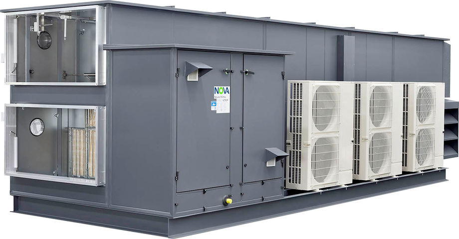 This system meets the most exacting technical requirements governing air conditioning technology, but also the customer’s aesthetic requirements, as it was finished in a special colour RAL 7024 (grey) in NOVA’s own paint shop – the air conditioning system thus blends seamlessly into the grey building façade.