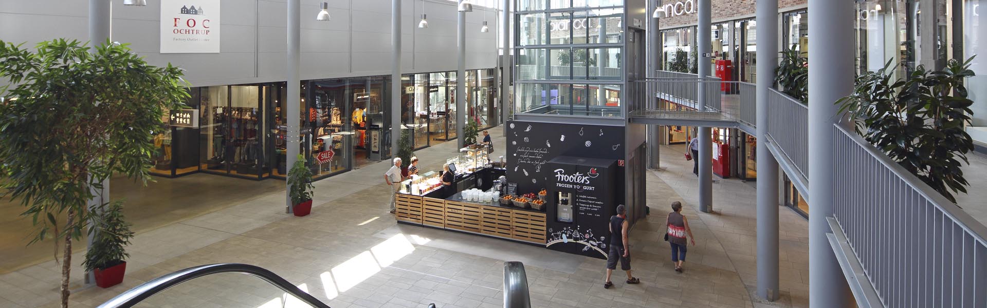 Visitors to Factory Outlet Center Ochtrup enjoy a special shopping experience in an urban atmosphere. Stores form a picturesque open air promenade and retailers greet their customers with open doors and a comfortable feel-good climate in their shops thanks to Kampmann's door air curtains.