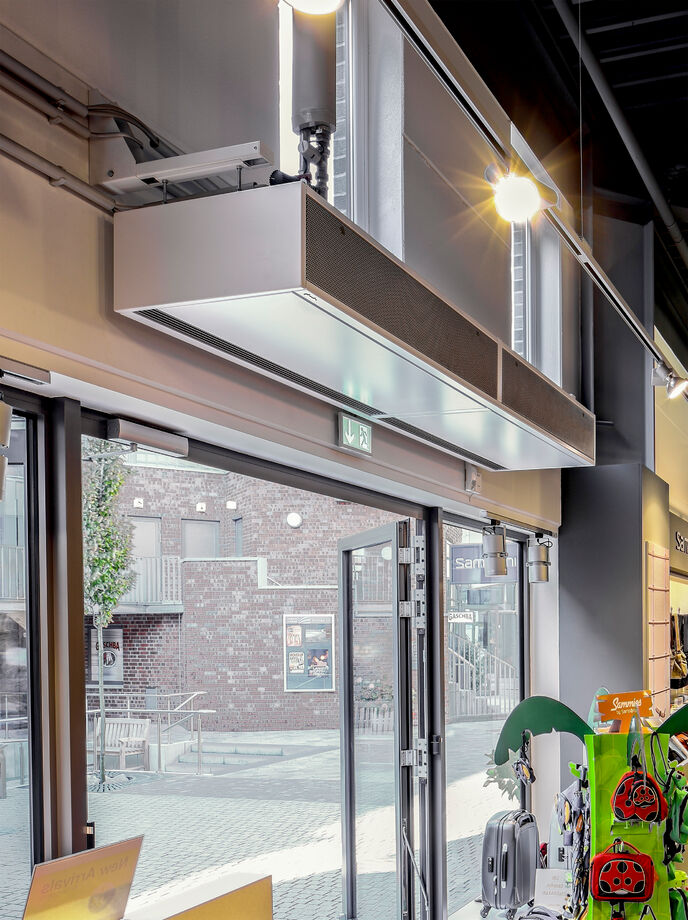 Tandem and Cassette-UniLine door air curtains ensure the perfect welcome with pleasant temperatures when customers enter the stores and main entrances of the factory outlet centre. They reduce energy losses despite their welcoming open doors.