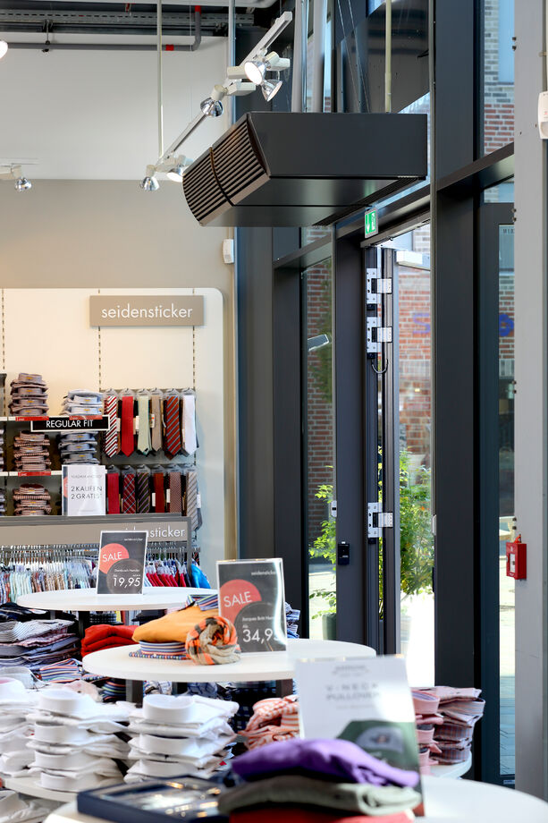 The targeted use of a TOP unit heater on the upper floor of the "North" entrance area cost-effectively creates a comfortable shopping experience.