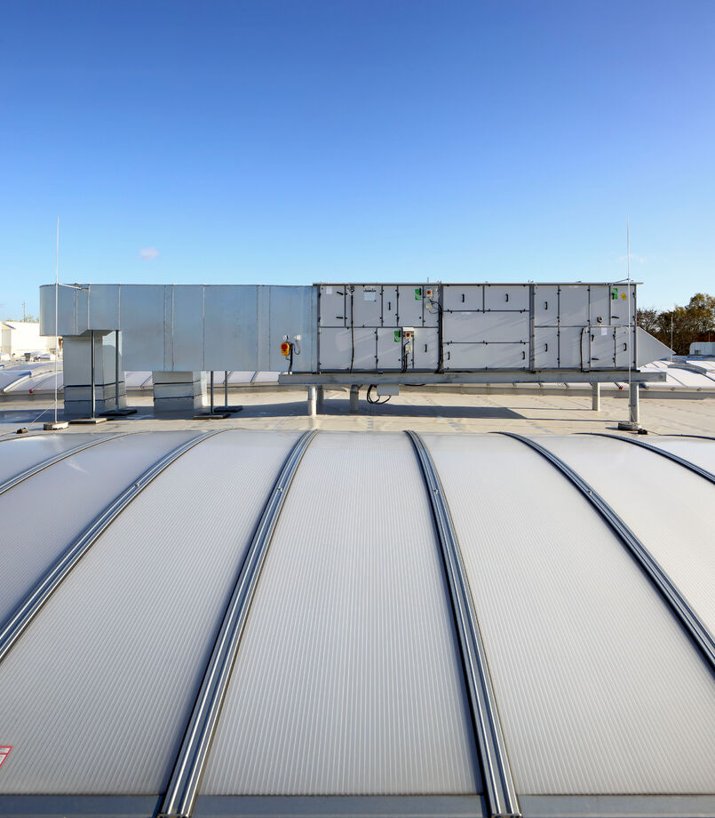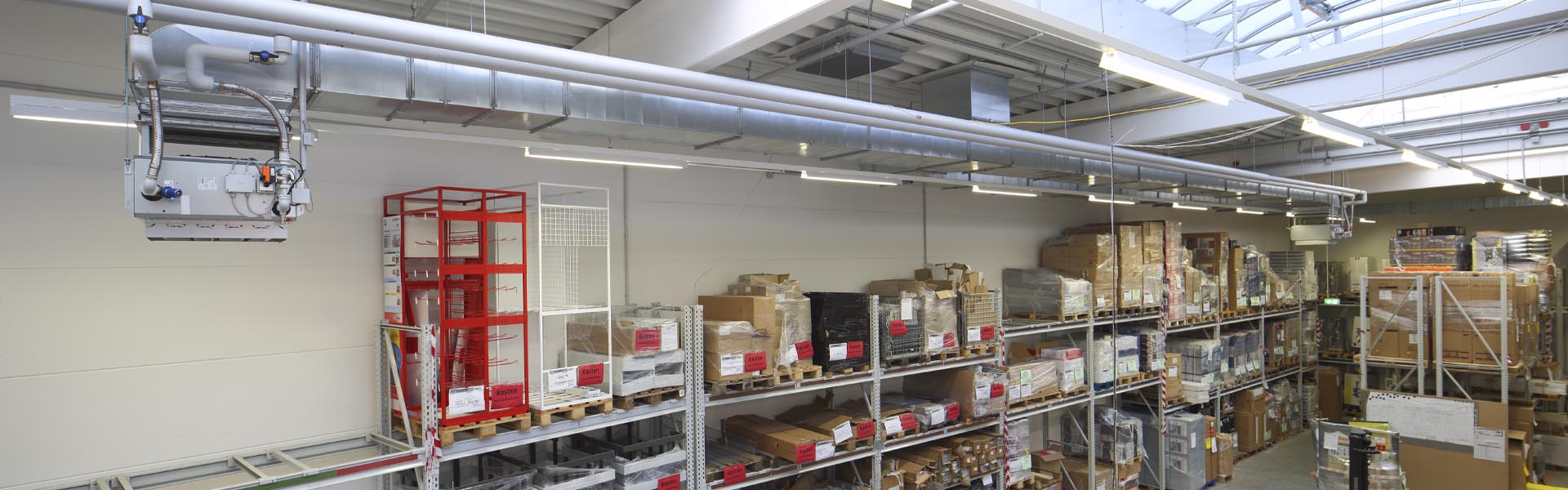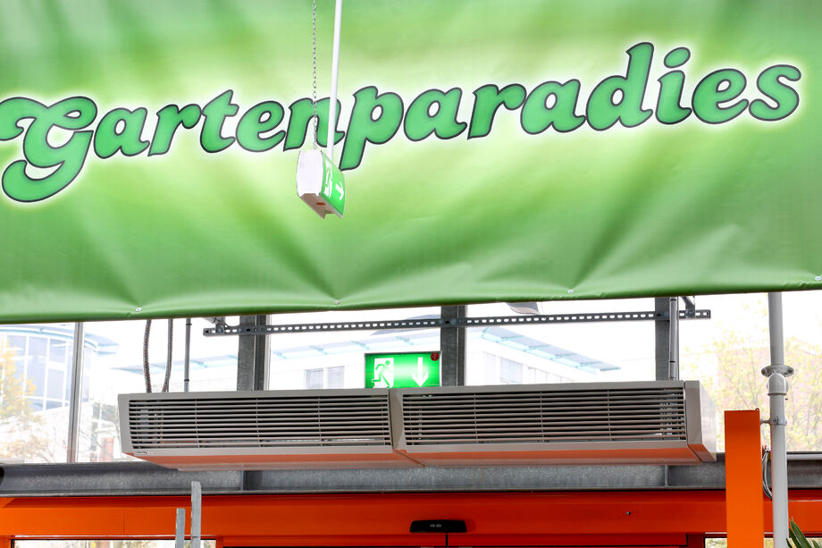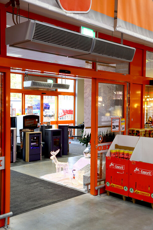 Vario door air curtains are installed at the customer entrances with ProtecTor door air curtains across the industrial doorways to provide effective protection of the interior climate.