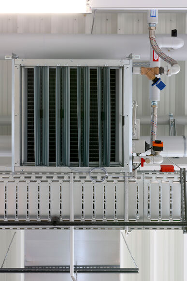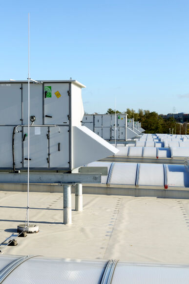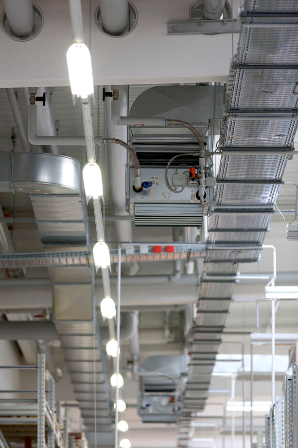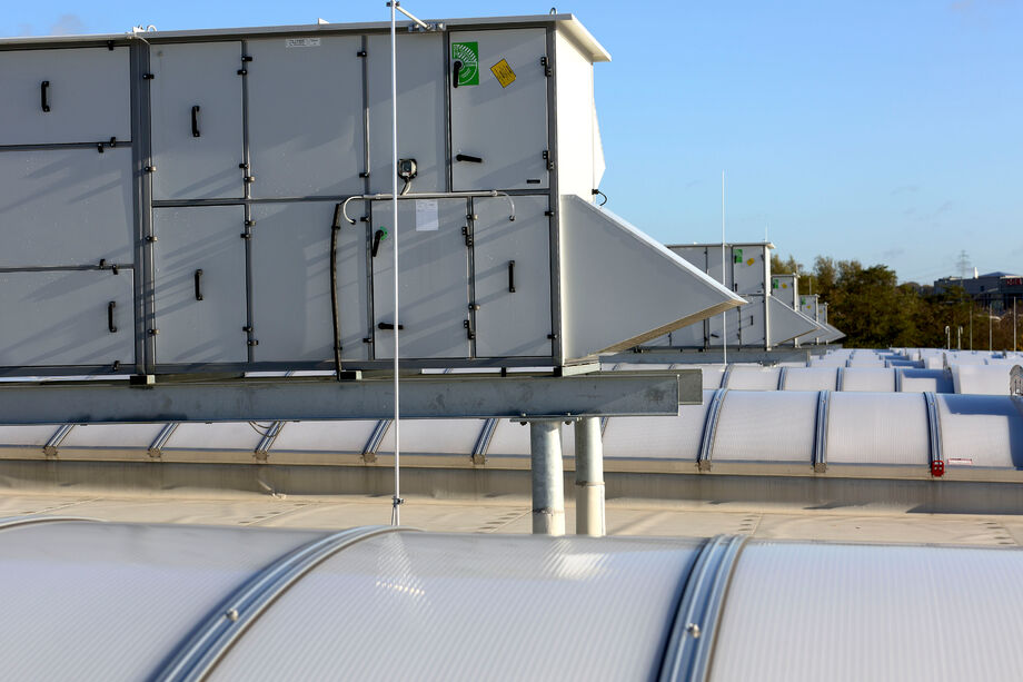 Combined with a number of skylights, the daylight-dependent lighting control is a further measure to achieve GreenBuilding status. Further key measures include an optimised building shell and the use of a gas absorption heat pump.
