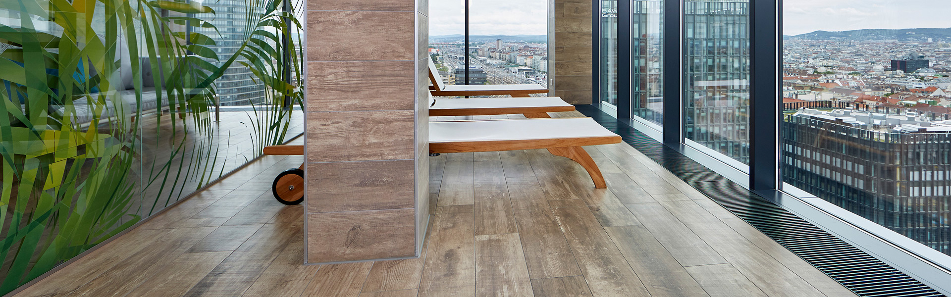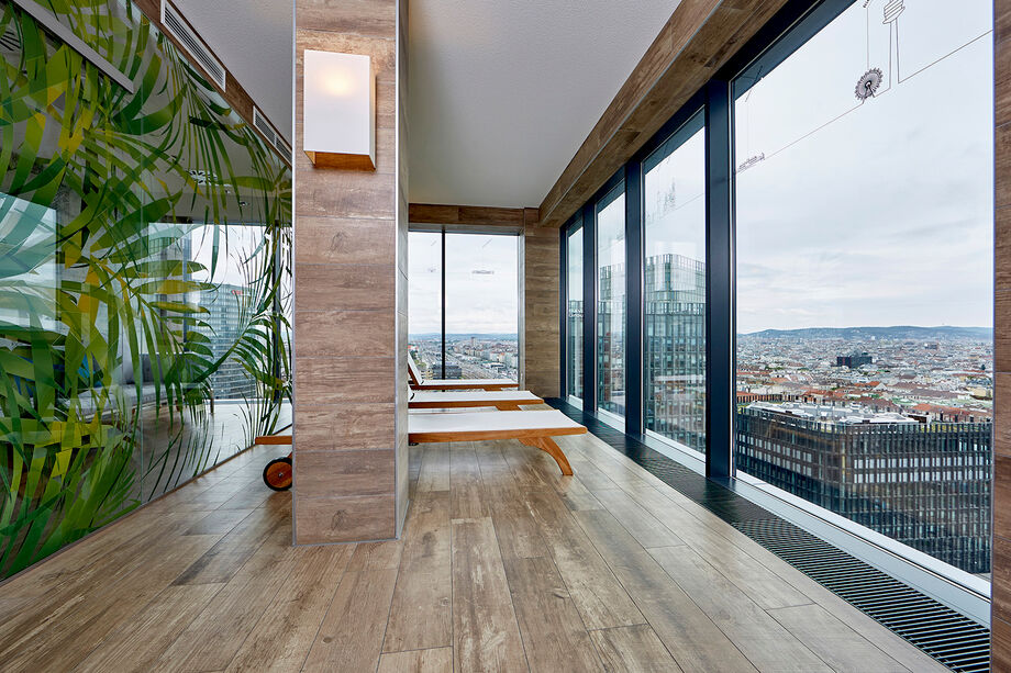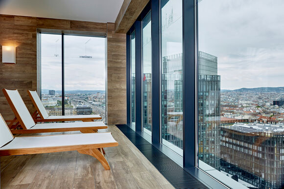 Kampmann trench heaters have more than just a thermal impact. You can see in the NOVOTEL in QBC 6 how the Katherm also have a visual impact, ensuring a wonderful view over the city of Vienna from the gym and quiet area - unobstructed thanks to Katherm.