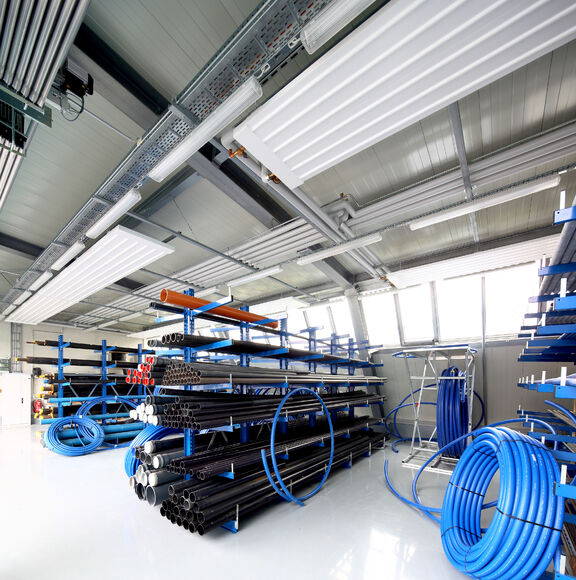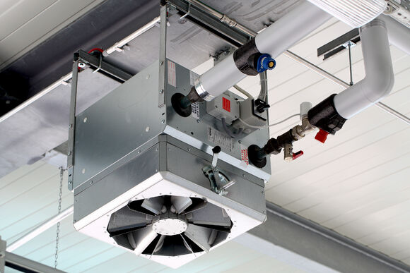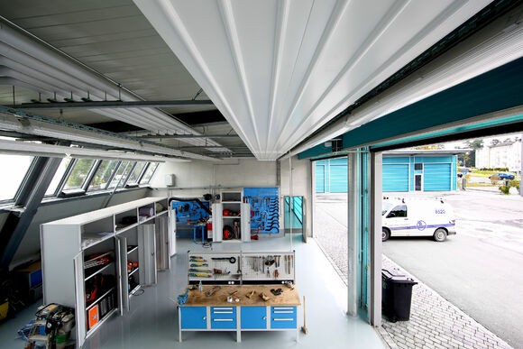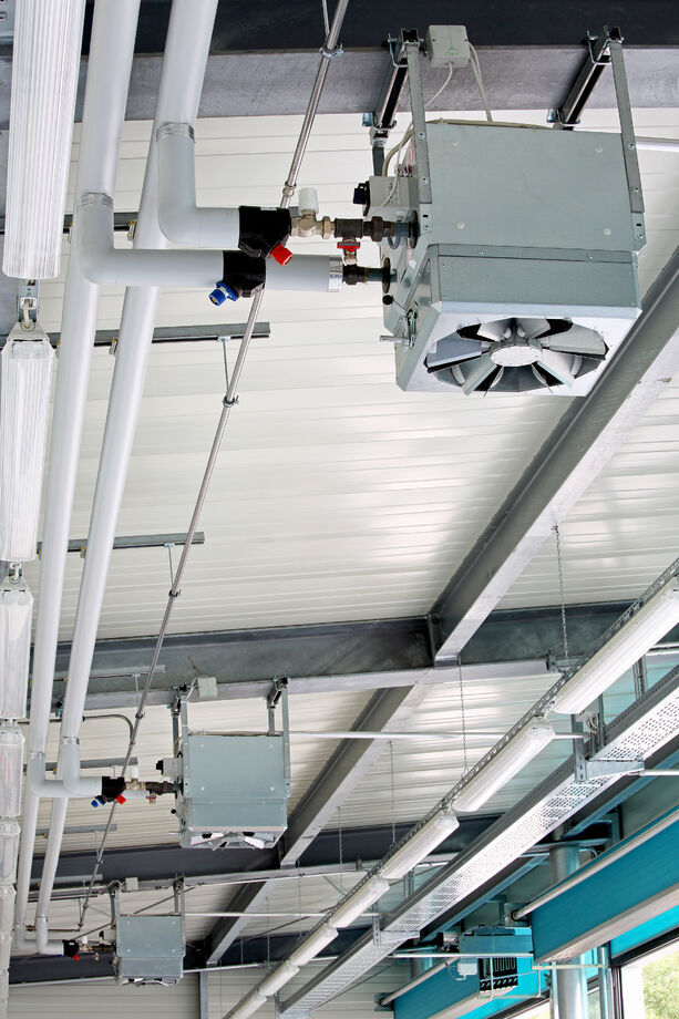 In the operating buildings, TOP unit heaters and Galaxis radiant ceiling panels guarantee a good interior climate. In designing the Galaxis radiant ceiling panels, special attention was paid to positioning them correcty along the curved ceiling.