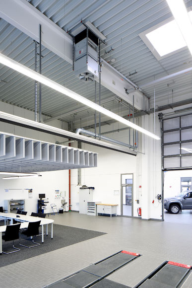 Up to 6,000 employees from the Volkswagen dealership organisation will receive training in ten multi-purpose training rooms. Tough TOP unit heaters provide decentralised heating and ventilation throughout the training rooms and in the catering and reception area. The models fitted with KaMAX air diffusers guarantee consistent air mixing in the lofty spaces.